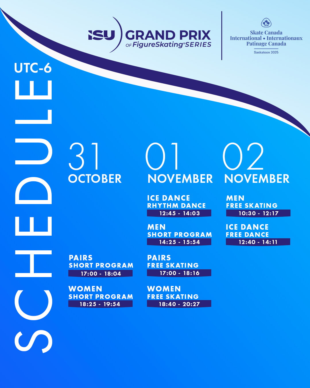 Find event information, schedule for Men, Women, Pair Skating and Ice Dance Figure Skating competition as part of the ISU Grand Prix.